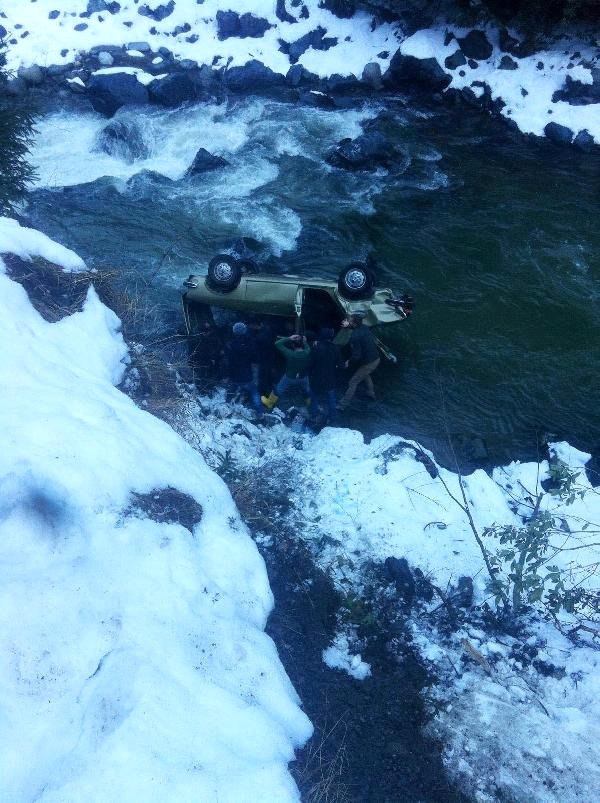 Çamlıhemşin'den Rize'ye giden 73 yaşındaki Refik Bayçelebi yönetimindeki 24 DL 298 plakalı otomobil, Kaplıca Köyü mevkiinde yoldaki buzlanma nedeniyle kontrolden çıkarak Fırtına Deresi'ne yuvarlandı. Deredeki bir kayaya takılarak akıntıya kapılmaktan kurtulan otomobilde bulunan İrfan Çankaya çevreden yetişenler tarafından çıkarıldı. Araçta sıkışan sürücü İrfan Bayçelebi ise yaklaşık yarım saatlik çabasının ardından kurtarıldı. İki yaralı da Kaçkar Devlet Hastanesi'nde tedavi altına alındı.